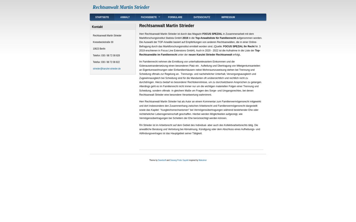 Es handelt sich hierbei nicht um einen Werbeeintrag von Martin Strieder, Fachanwalt Arbeitsrecht, Fachanwalt Familienrecht Berlin. Sollten Sie fehlerhafte Daten bemerken, dann kontaktieren Sie uns bitte. Wir werden die Daten prüfen und korrigieren.