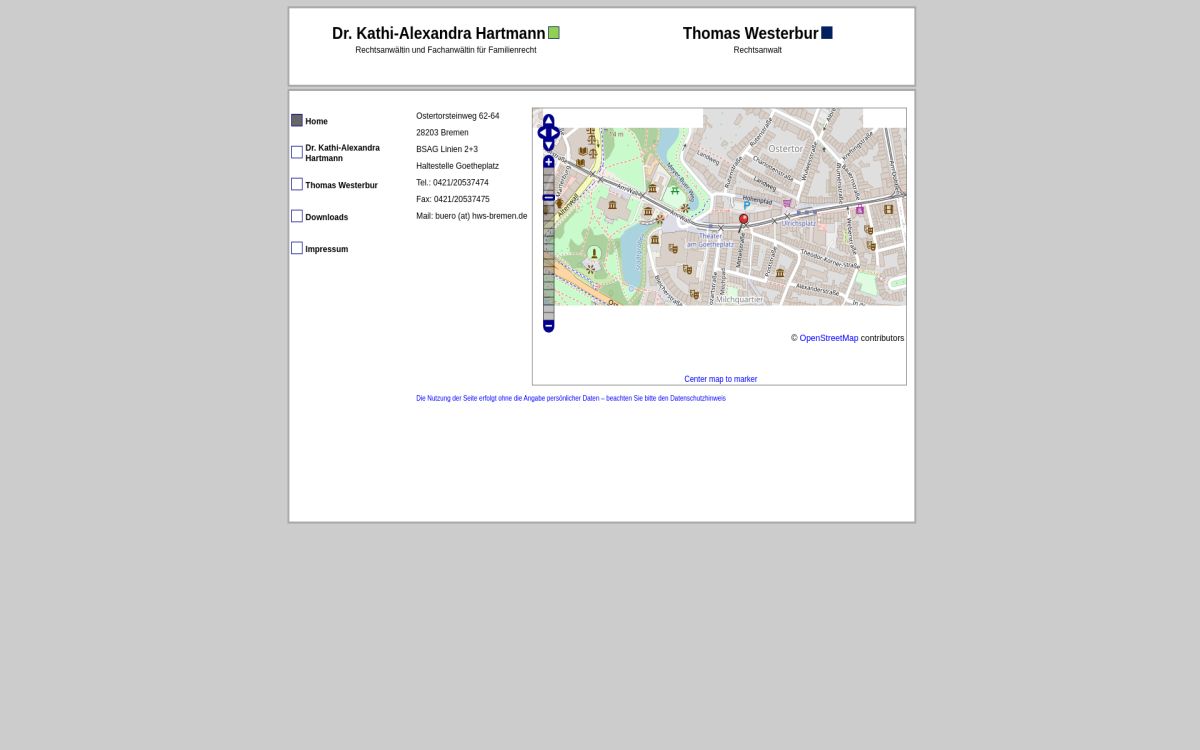 Es handelt sich hierbei nicht um einen Werbeeintrag von Thomas Westerbur, Rechtsanwalt, Bremen. Sollten Sie fehlerhafte Daten bemerken, dann kontaktieren Sie uns bitte. Wir werden die Daten prüfen und korrigieren.