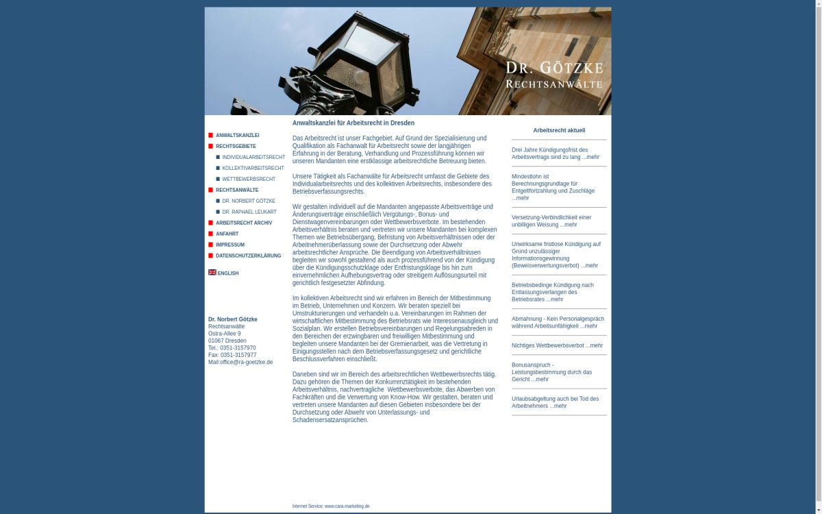 Es handelt sich hierbei nicht um einen Werbeeintrag von Dr. jur. Norbert Götzke, Rechtsanwalt, Fachanwalt Arbeitsrecht Dresden. Sollten Sie fehlerhafte Daten bemerken, dann kontaktieren Sie uns bitte. Wir werden die Daten prüfen und korrigieren.
