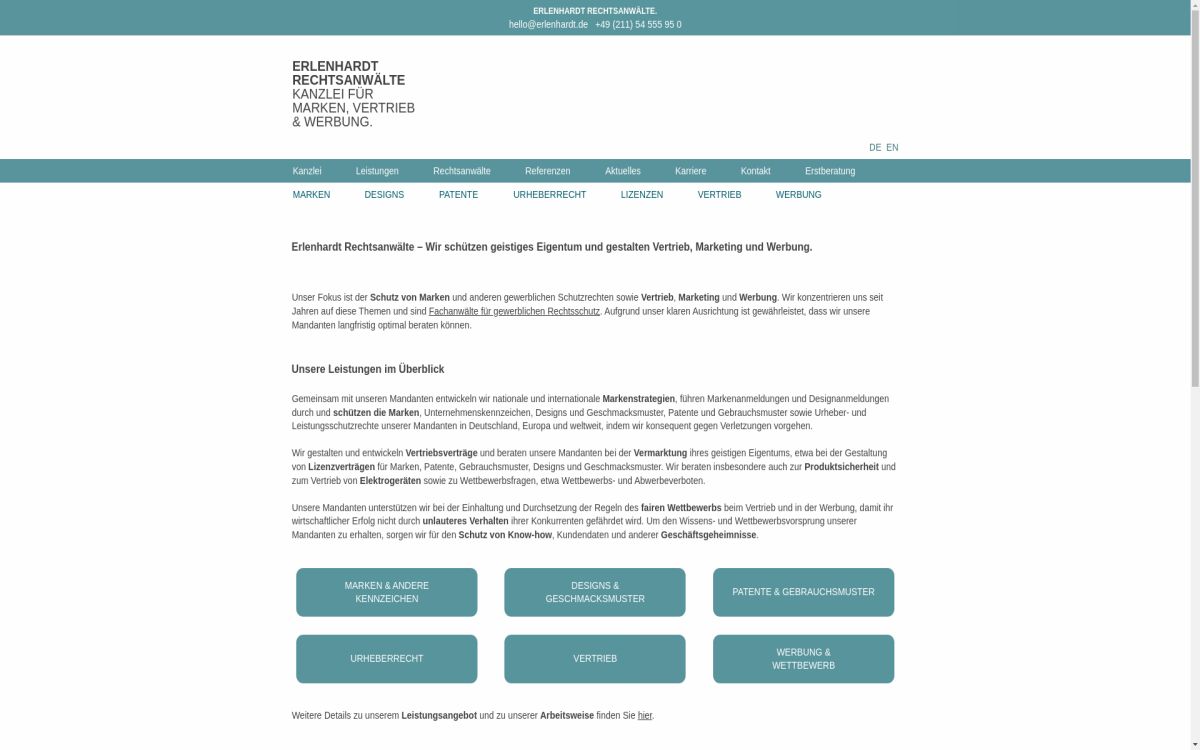 Es handelt sich hierbei nicht um einen Werbeeintrag von Andreas Erlenhardt, LL.M., Rechtsanwalt, Fachanwalt Gewerblichen Rechtsschutz Düsseldorf. Sollten Sie fehlerhafte Daten bemerken, dann kontaktieren Sie uns bitte. Wir werden die Daten prüfen und korrigieren.