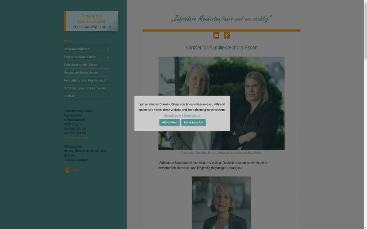 Es handelt sich hierbei nicht um einen Werbeeintrag von Cornelia Hay, Rechtsanwältin, Fachanwalt Familienrecht Essen. Sollten Sie fehlerhafte Daten bemerken, dann kontaktieren Sie uns bitte. Wir werden die Daten prüfen und korrigieren.