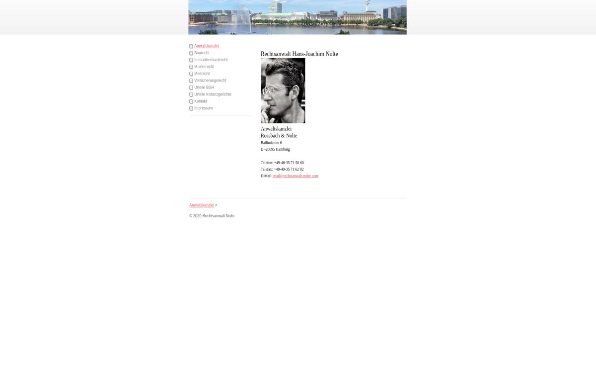 Es handelt sich hierbei nicht um einen Werbeeintrag von Hans-Joachim Nolte, Rechtsanwalt, Hamburg. Sollten Sie fehlerhafte Daten bemerken, dann kontaktieren Sie uns bitte. Wir werden die Daten prüfen und korrigieren.
