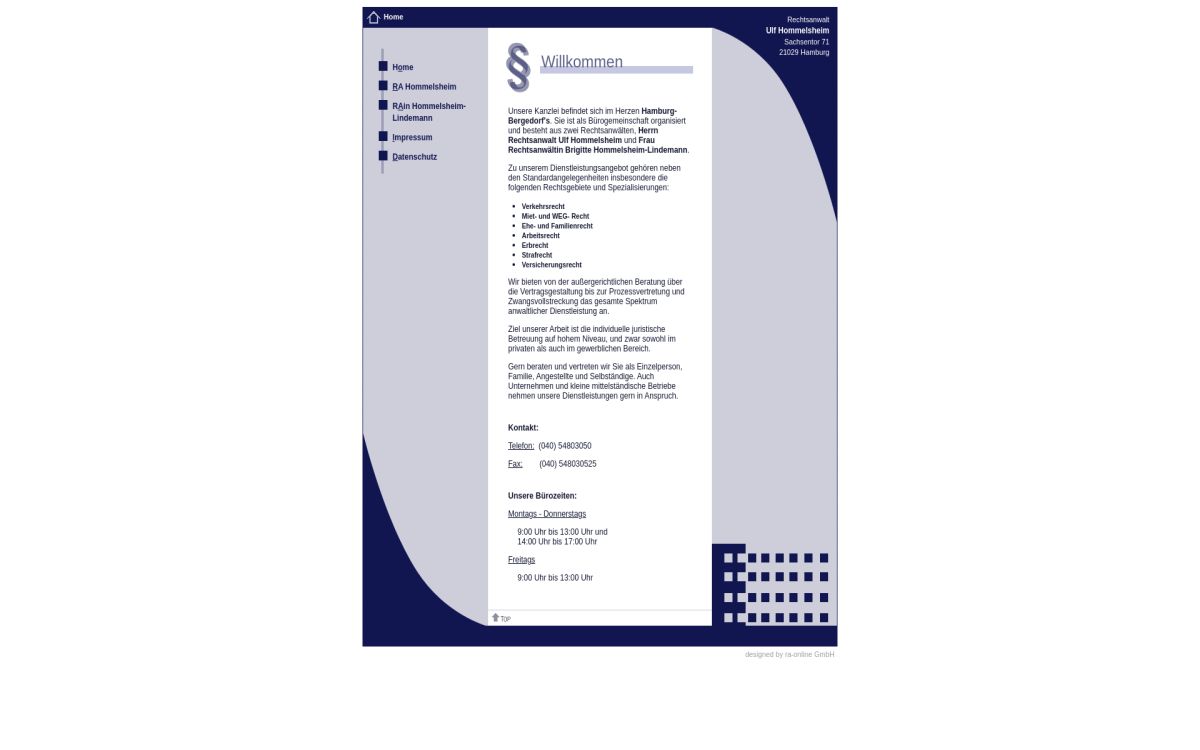 Es handelt sich hierbei nicht um einen Werbeeintrag von Ulf Hommelsheim, Fachanwalt Verkehrsrecht Hamburg. Sollten Sie fehlerhafte Daten bemerken, dann kontaktieren Sie uns bitte. Wir werden die Daten prüfen und korrigieren.