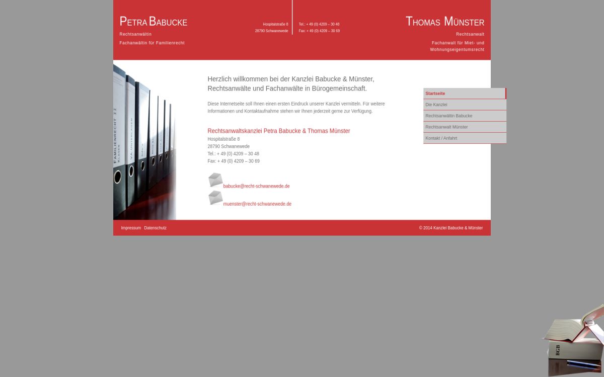 Es handelt sich hierbei nicht um einen Werbeeintrag von Petra Babucke, Rechtsanwältin, Schwanewede. Sollten Sie fehlerhafte Daten bemerken, dann kontaktieren Sie uns bitte. Wir werden die Daten prüfen und korrigieren.